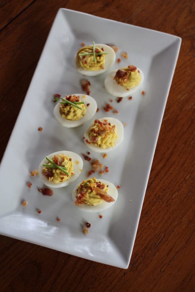 Deviled eggs are a great go to for spring picnics or get togethers. Pump up the flavor with bacon.