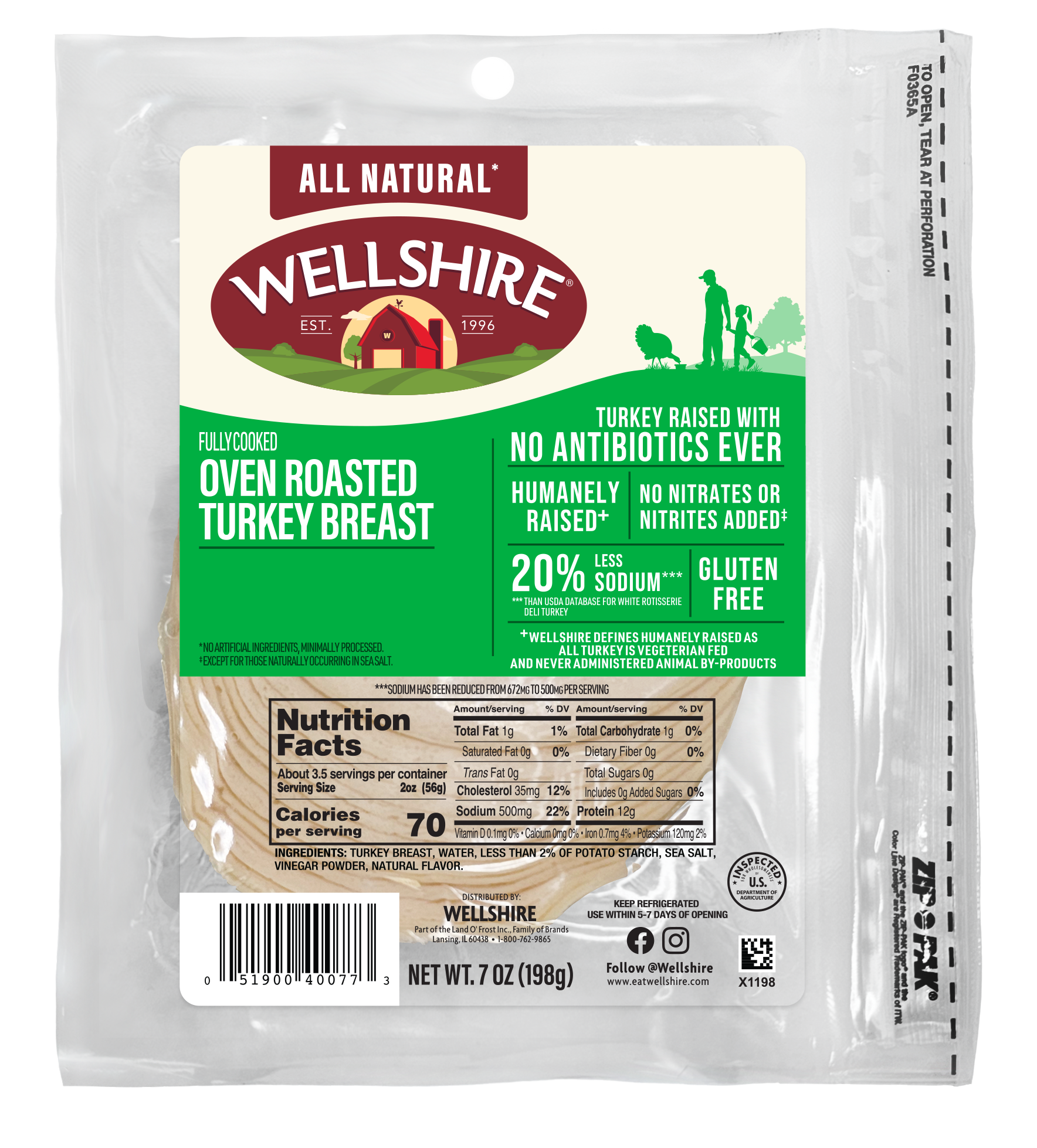 ** Humanely Raised: Wellshire defines Humanely Raised as all animals are vegetarian fed and never administered any animal by-products