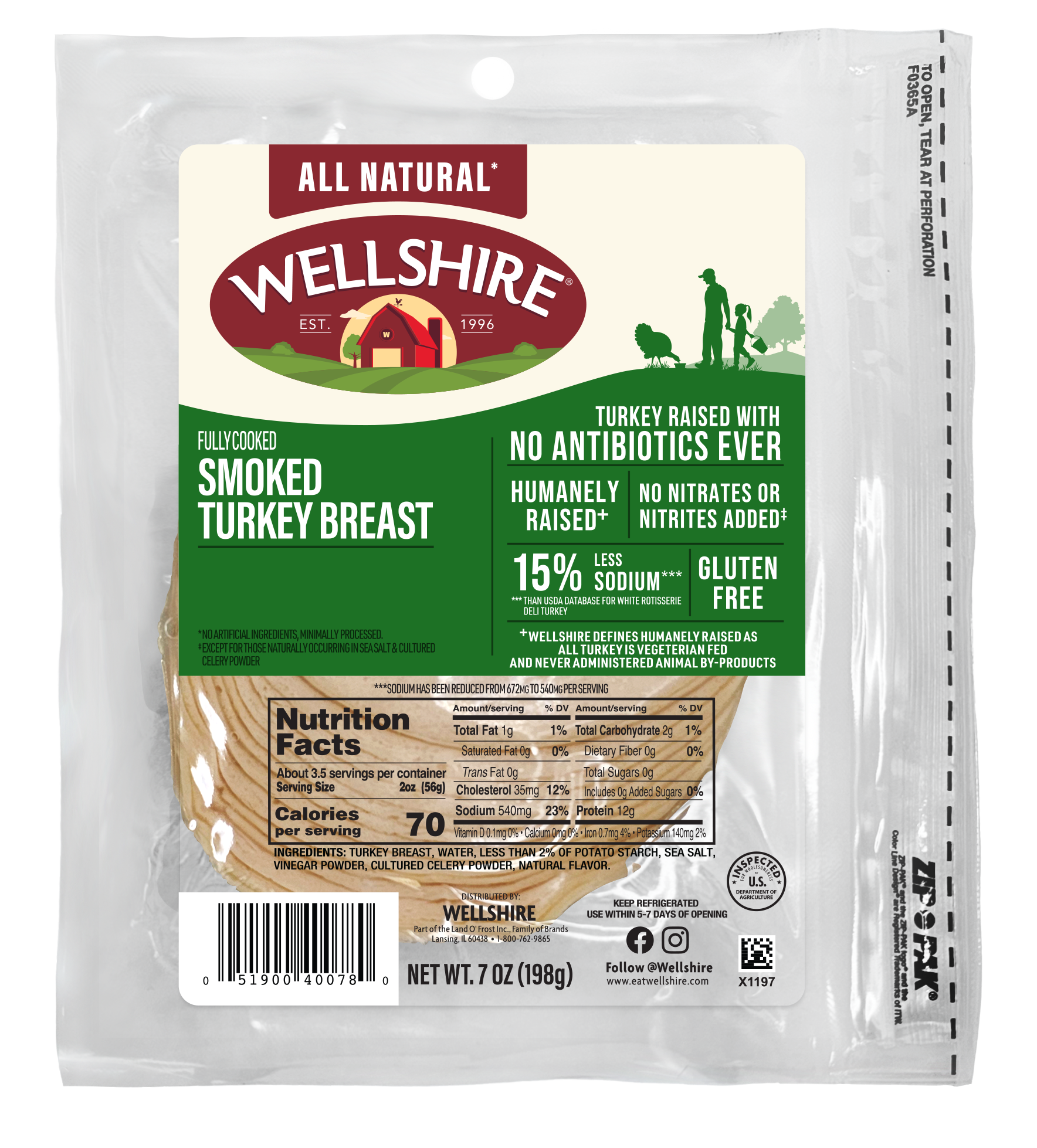 ** Humanely Raised: Wellshire defines Humanely Raised as all animals are vegetarian fed and never administered any animal by-products